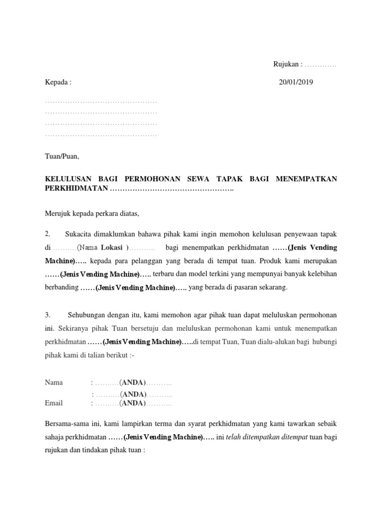 Contoh Surat Permohonan Sewa Tapak Gerai Pdf